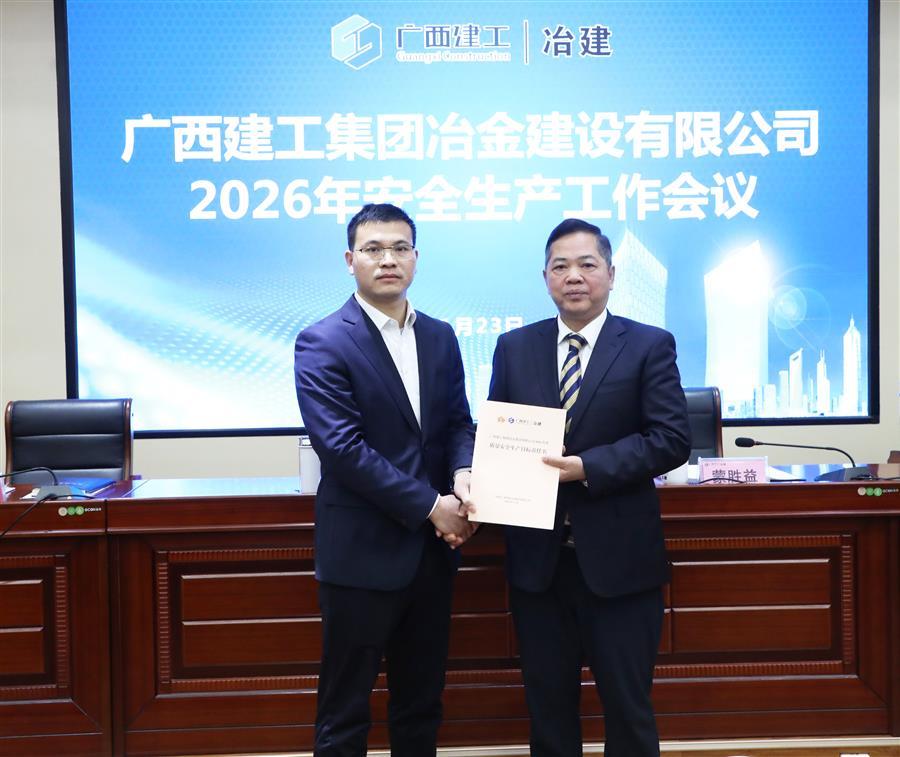1月23日,冶建公司2026年安全生产工作会议在第二会议室召开。会议深入贯彻习近平总书记关于安全生产的重要论述和指示批示精神,全面贯彻落实中央、自治区安全生产会议及集团公司年度安全生产工作会议精神,总结公司2025年安全生产工作,分析新形势下安全生产面临的突出问题,部署2026年安全生产工作。公司董事长、党委书记覃振华出席并讲话,公司总经理、党委副书记蒙胜益作安全生产工作报告,领导班子成员赖海标、廖立波、阮仁胜、叶益华参加。公司副总经理、安全总监韦克雪主持会议。