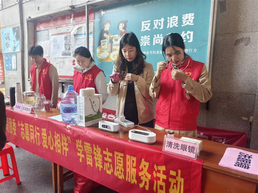 活动现场,志愿者们为社区居民提供清洗眼镜、赠送红枣姜茶、清除小广告、防诈宣传等志愿服务,为社区居民送去温暖与便利。